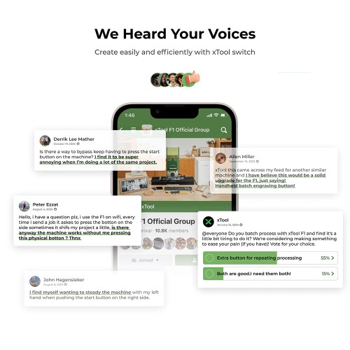 xTool Button Switch yra praktiškas priedas, skirtas pagerinti naudotojų patirtį tiems, kurie dirba su xTool lazerinėmis mašinomis. Šis paprastas, bet efektyvus įrenginys leidžia naudotojams vienu paspaudimu pradėti arba pristabdyti graviravimo ir pjovimo lazeriu projektus, o tai užtikrina didesnį valdymą ir patogumą. Jo paprasta konstrukcija leidžia lengvai integruoti į esamas sąrankas, todėl užtikrinamas sklandus veikimas, nereikia atlikti sudėtingų koregavimų.