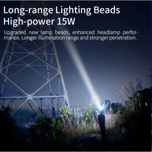 Žibintuvėlis ant galvos, įkraunamas USB-C, 15W, 800lm, 2x 18650